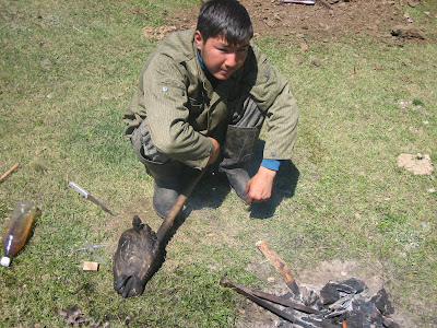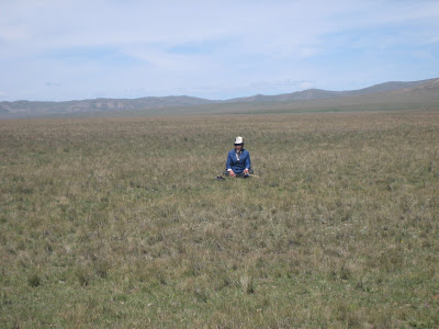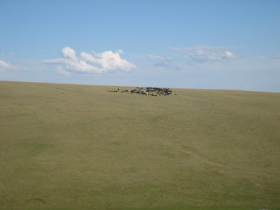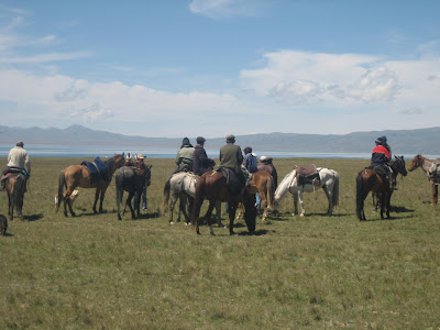 A lot of open space on the jailoo. You can see a couple yurts down below. The yurt I stayed in is way in the distance, on the shoreline.